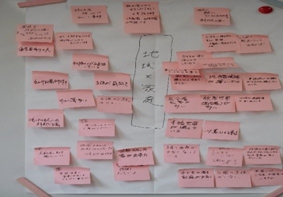 後半は、多くの仲間を作り、一緒に活動するための合意形成の一例として「KJ法」により課題を見つけ解決策を探る方法をワークショップ形式で行いました。