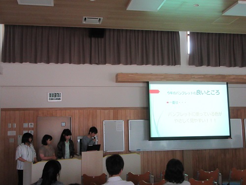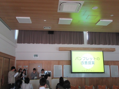 今回は、「大学案内パンフレットの改善」をテーマに1グループ5・6名で、ディスカッションを繰り返し、最後にプレゼンテーションを行いました。