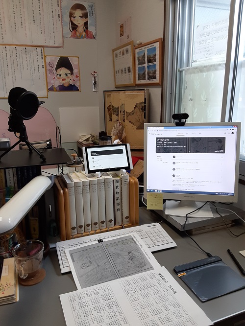 私が担当する「近世の文学」では、Google Meetというビデオ会議システムを活用して、リアルタイムでの授業を行っています。