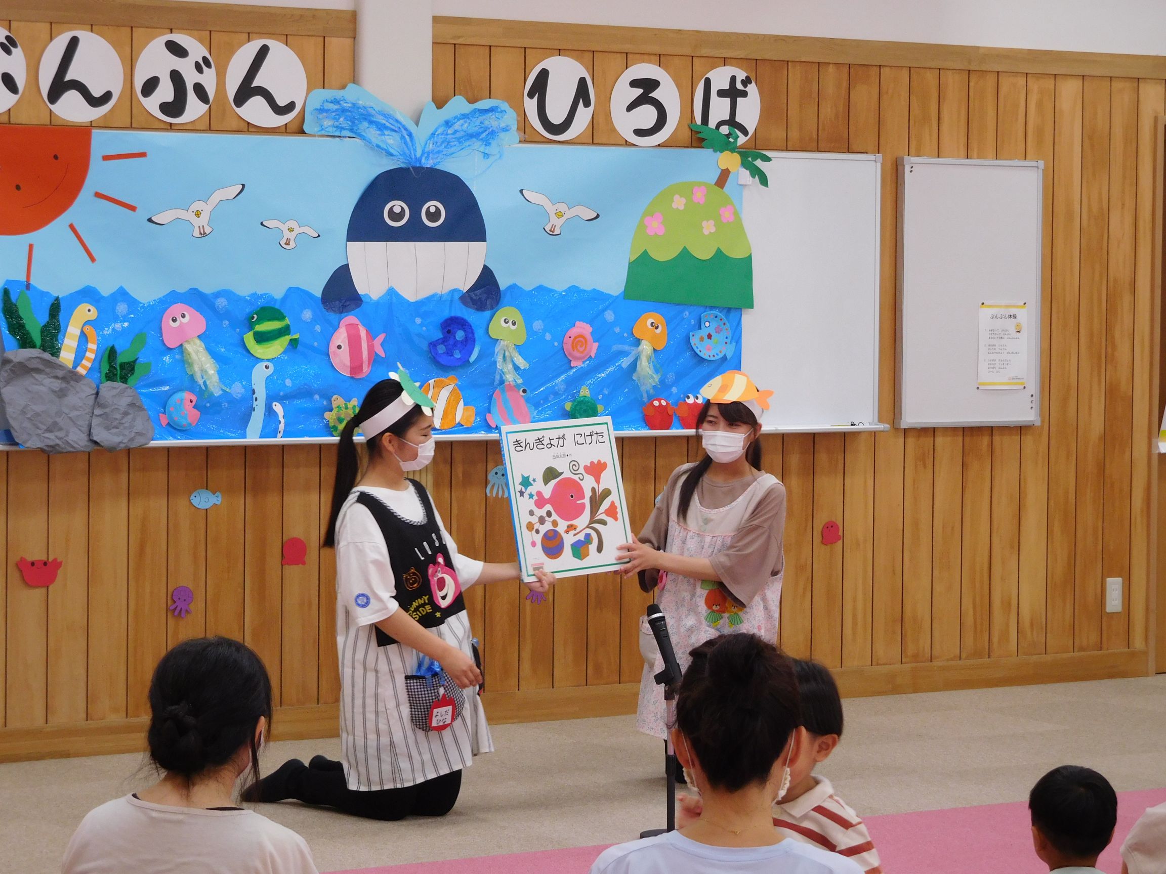 「海の遠足」の後は、みんなでエビカニクスを踊り、最後に、『きんぎょが にげた』の絵本を読み、みんなで金魚探しをして楽しむことができました。