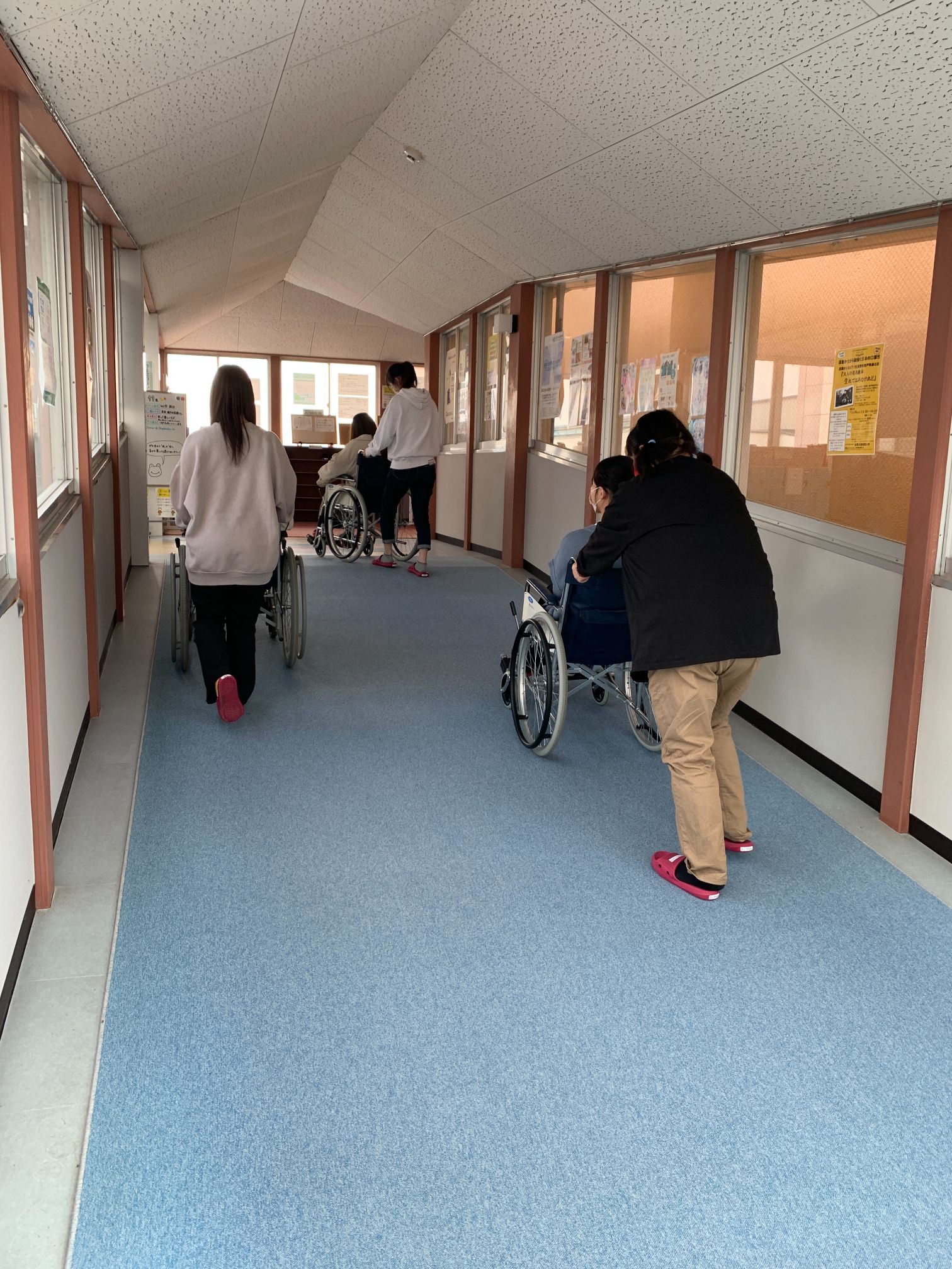 今回の演習では、車いすの介助方法を知るということも重要ですが、介助を受けるときの気持ちや安心できる声掛けとはどのようなものなのかを学ぶことも重要です。施設実習でも今回の体験を活かしてもらいたいです。