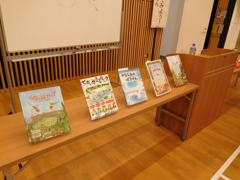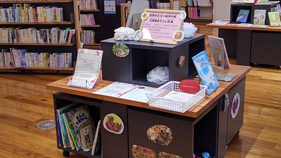 講演会の開催にあわせて、長浜図書館では近藤さんの絵本コーナーが設置されました。