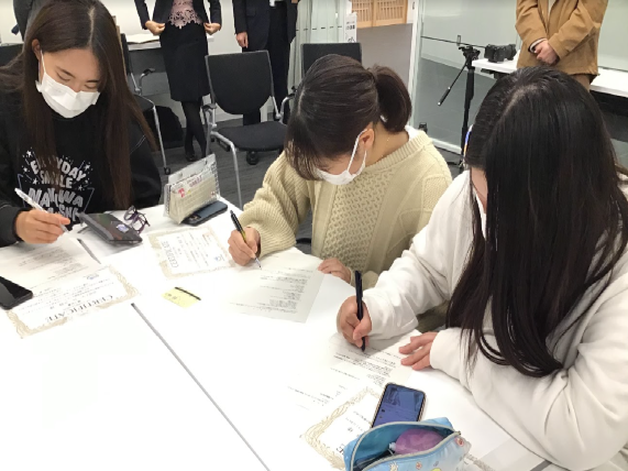 プログラム終了後は、長浜市市民活躍課の方より、参加者全員に「やさしい日本語普及プロジェクト」の修了証が渡されました。