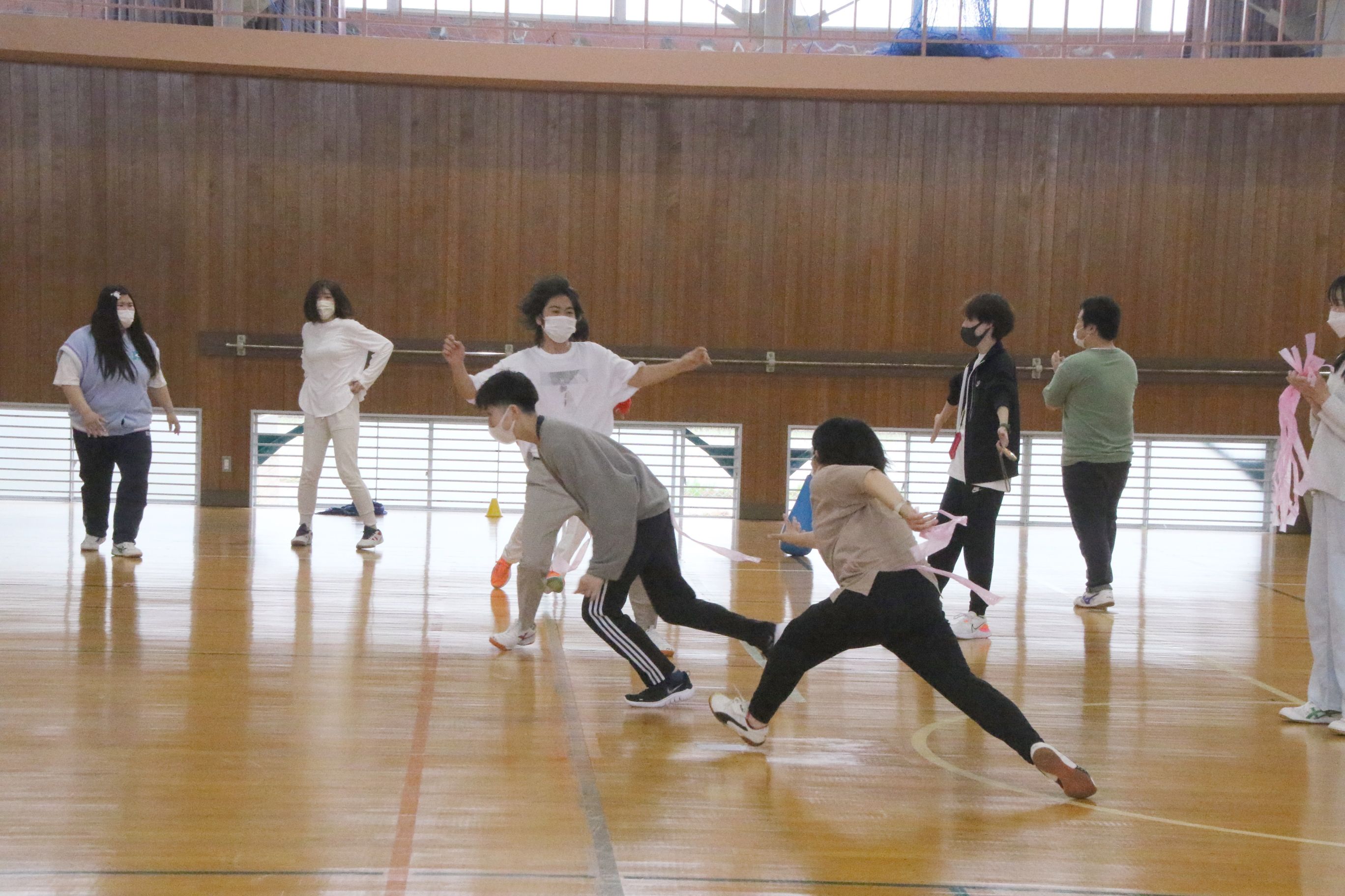 本来であれば、小学校に行って遊びを指導し一緒に学ぶ予定でしたが、今年もコロナが収束しない状況ですので、学生が学生を指導する形の実践となりました。
