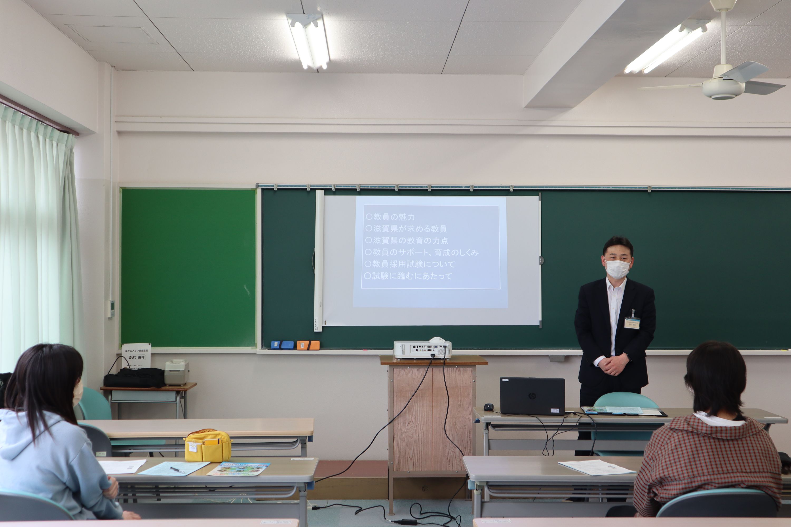 滋賀県教育委員会の教職員課の方にお越しいただき、滋賀県の教員採用試験についてご案内いただきました。