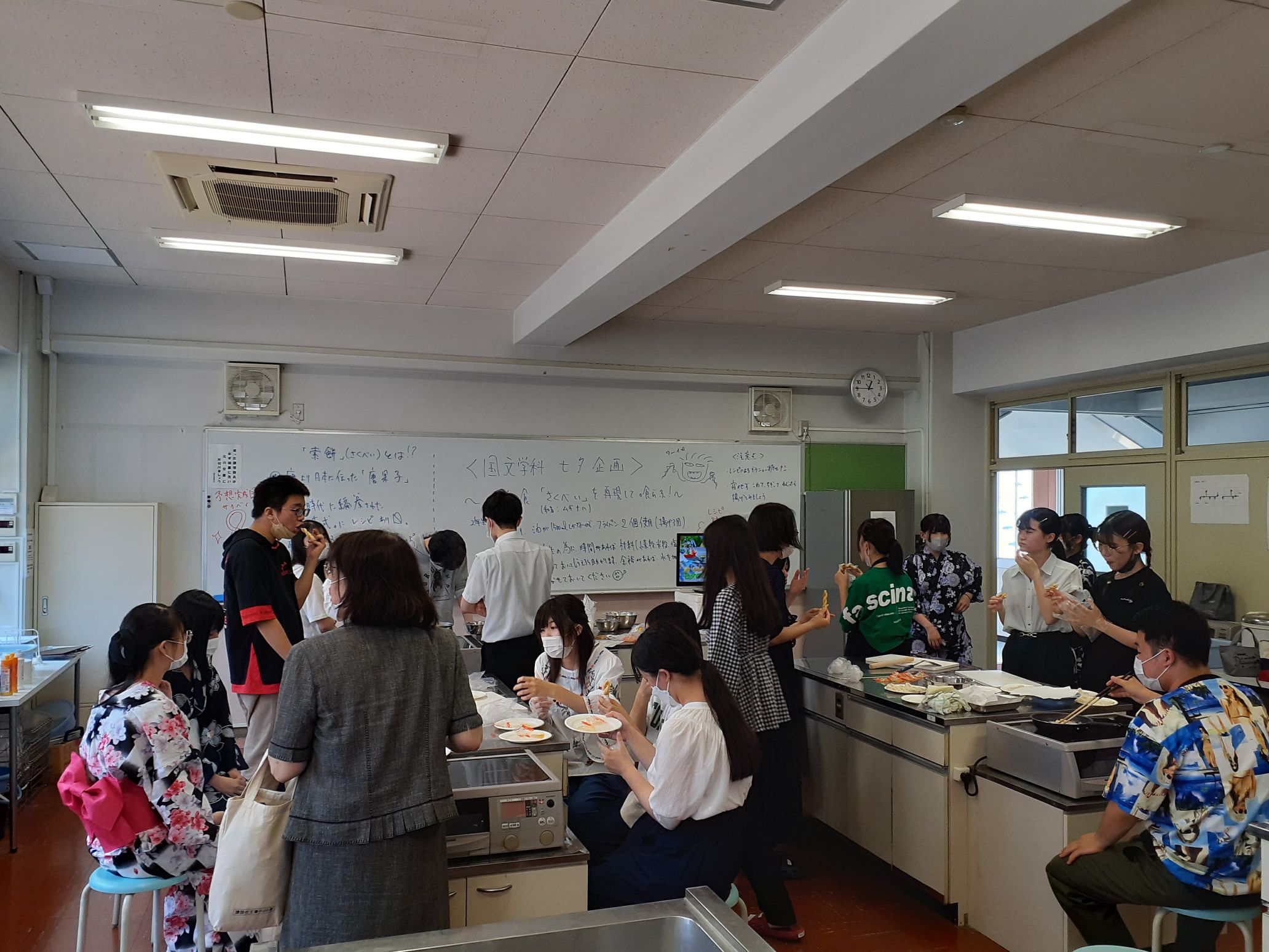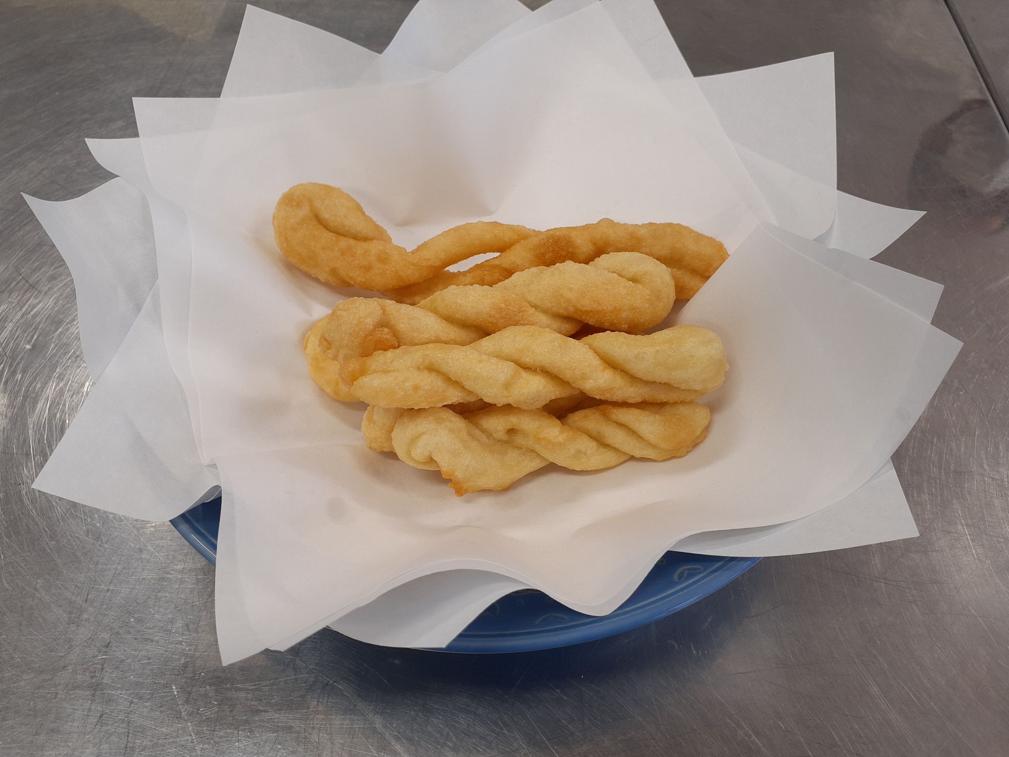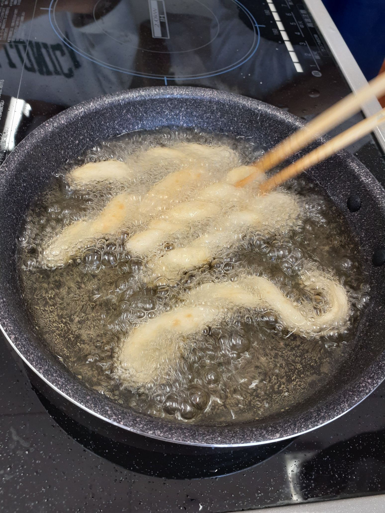 2年生が昼前にやってきて下準備をしてくれて、昼休みに1年生と一緒に練って、ねじって、揚げて、食しました。2年生と1年生との交流の時間ともなりました。