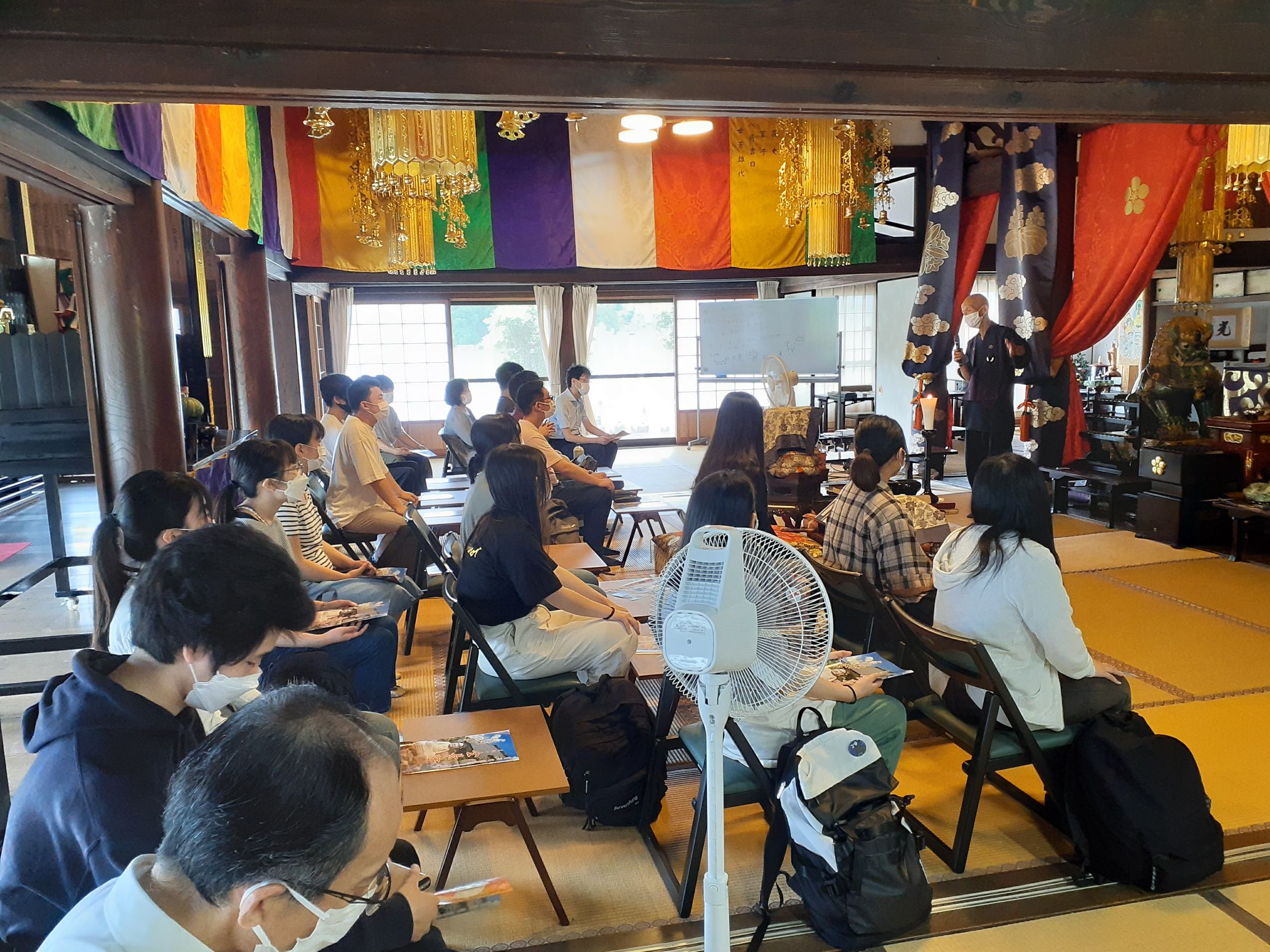 ①アジサイで有名な全長寺で、地域活性化への取り組みを住職から聴く