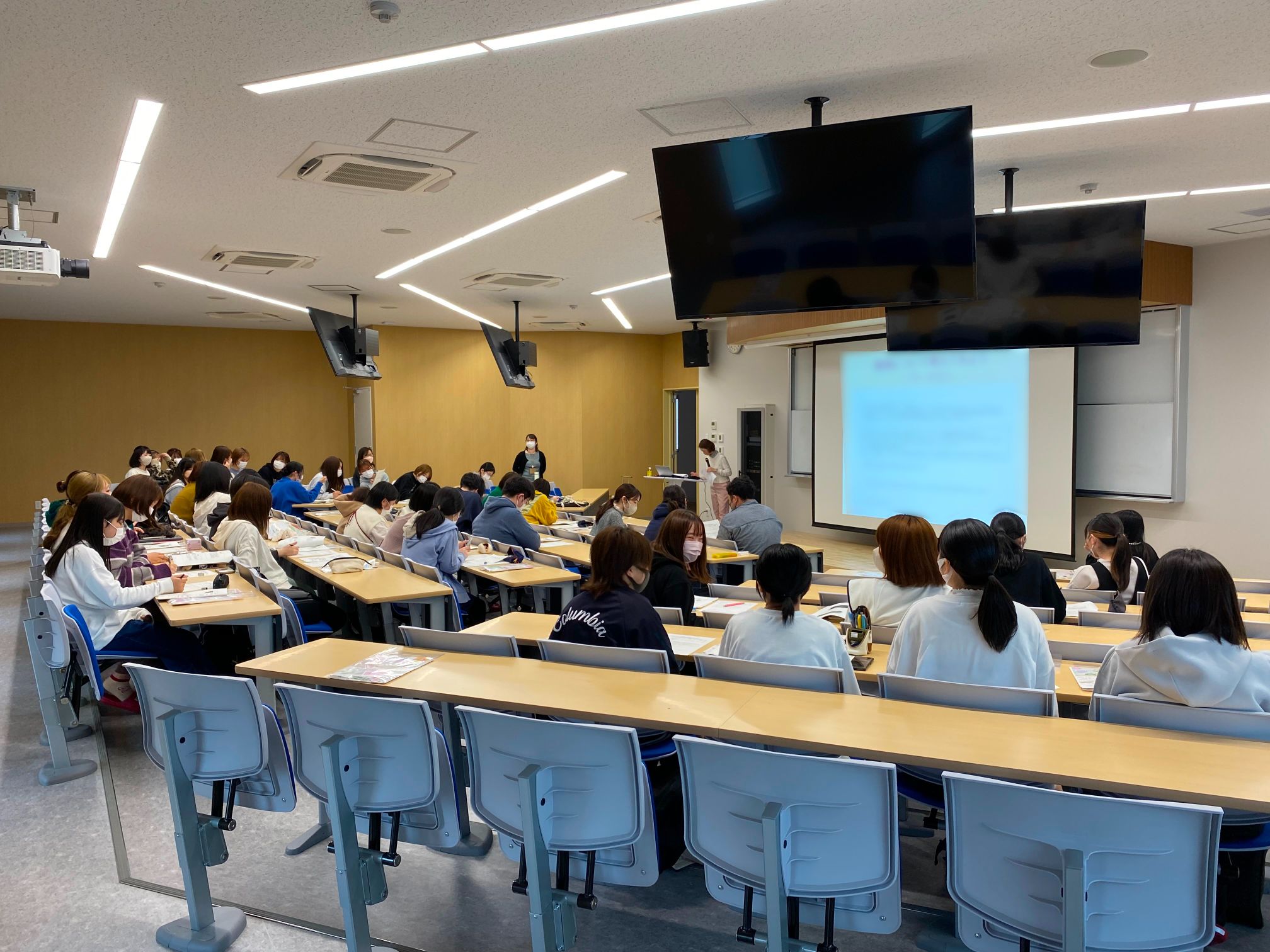 まず、4月4日には、長浜警察署(交通課、警備課、生活安全課)様にお越しいただき、交通安全に関する啓発のほか、若者世代が標的となりやすい犯罪事例等を説明いただきました。聴講していた学生は、事件の事例を聞きながら、自身が被害者だけでなく、知らず知らずのうちに加害者側になっている可能性があることを学び、日常生活において慎重に行動し、困ったことや疑問があればすぐに周囲に相談することの大切さを学びました。ご紹介いただいた事例は、どれも恐ろしいものでしたが、とても身近で起こり得ることや誰が、いつ、どこで巻き込まれる可能性があることも改めて実感しました。