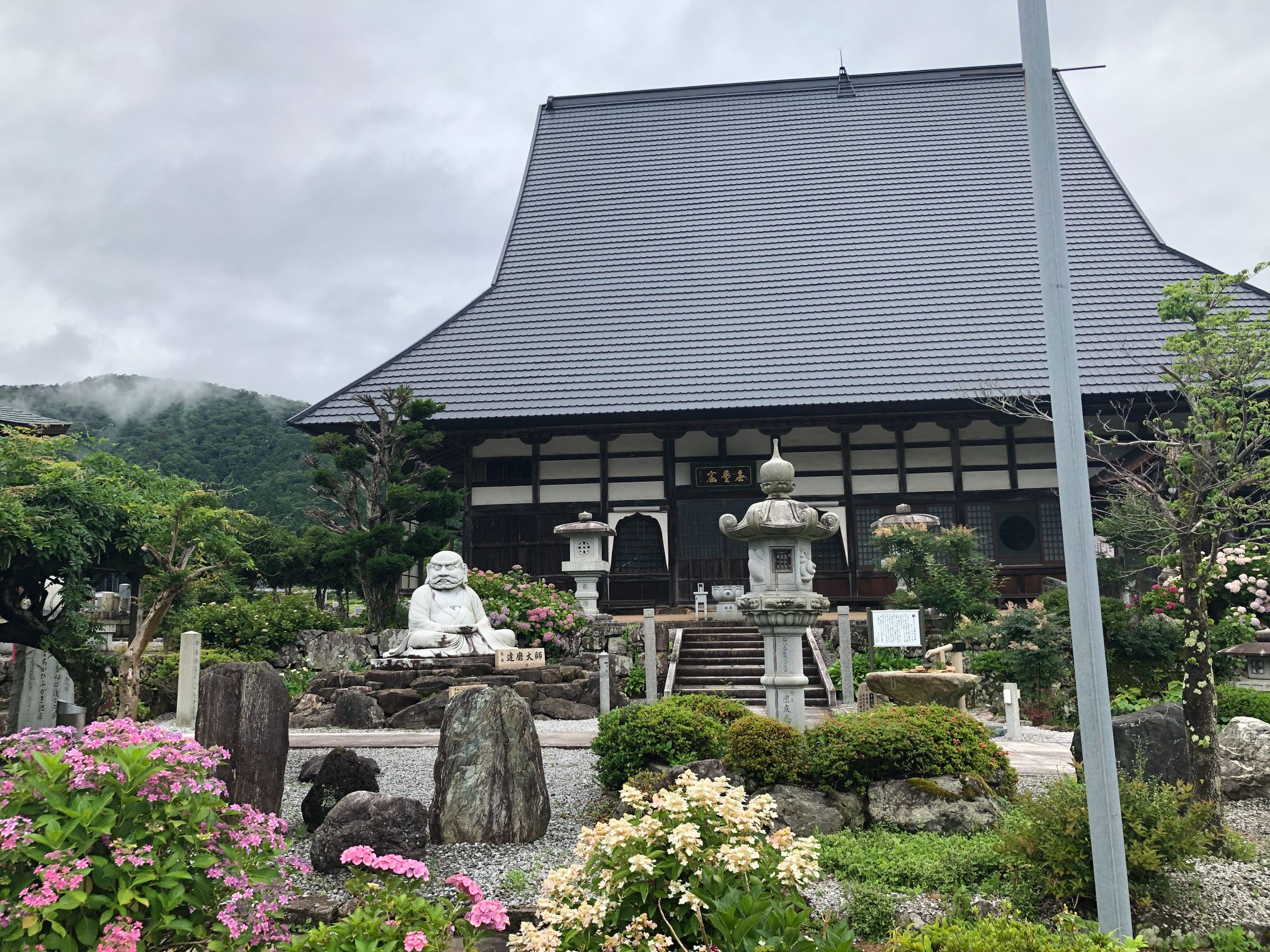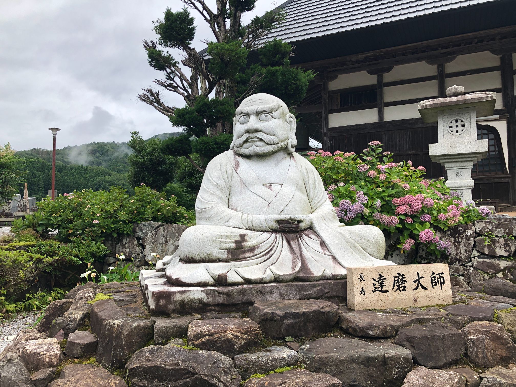 紫陽花の中を歩いていくと、全長寺のもう一つの異名、「だるま寺」を象徴するだるまの石像が見えてきました。なかなか迫力のあるだるまさんです。