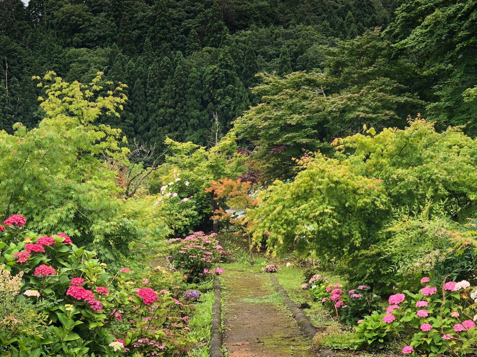 バスを降りてまずびっくりしたのは、境内に咲き乱れる色とりどりの紫陽花です。全長寺は別名「あじさい寺」とも言うそうですが、まさに紫陽花に囲まれた寺は「あじさい寺」そのもの。この季節に訪れる者だけが出会える、絶好の景色です。