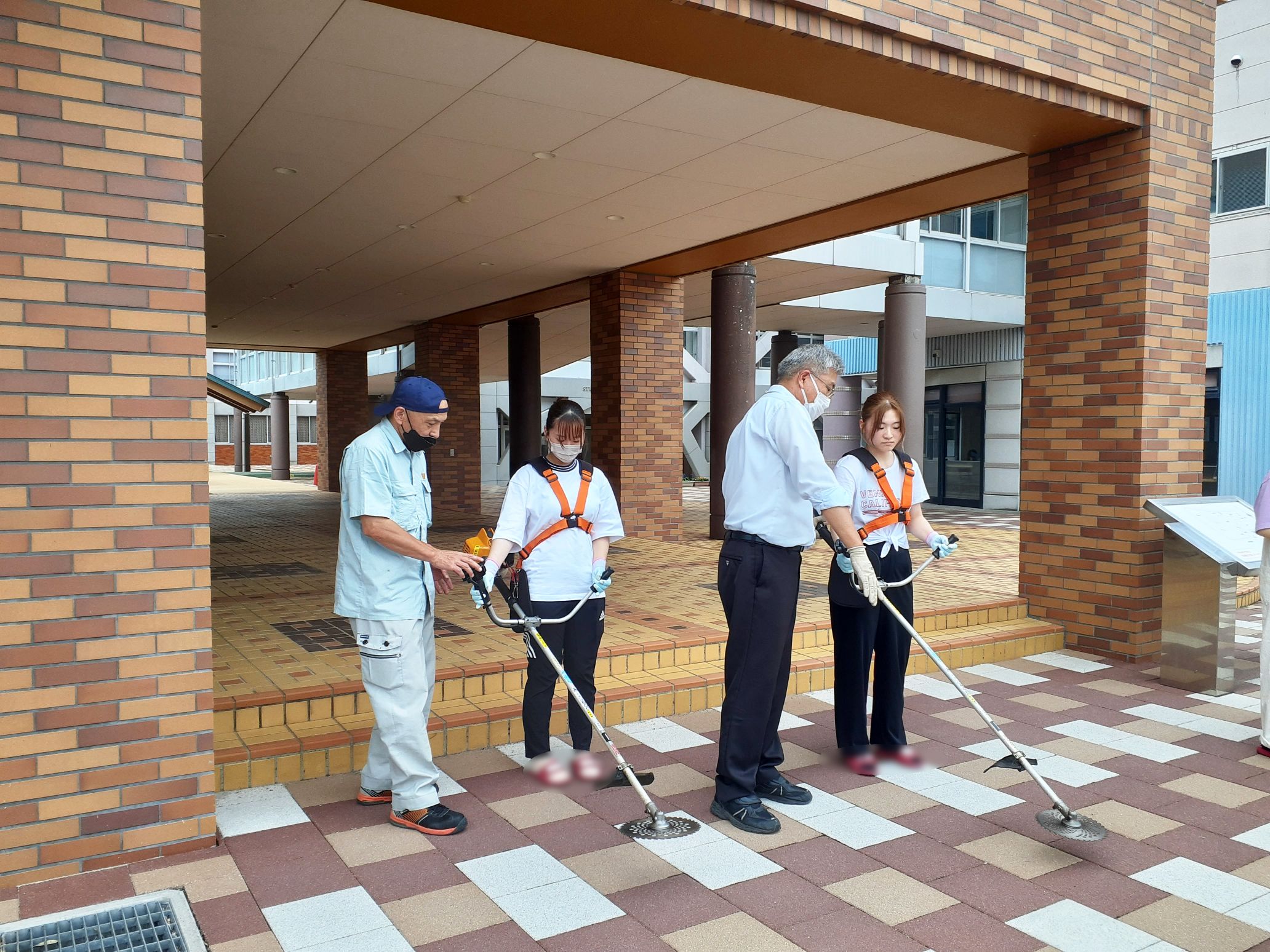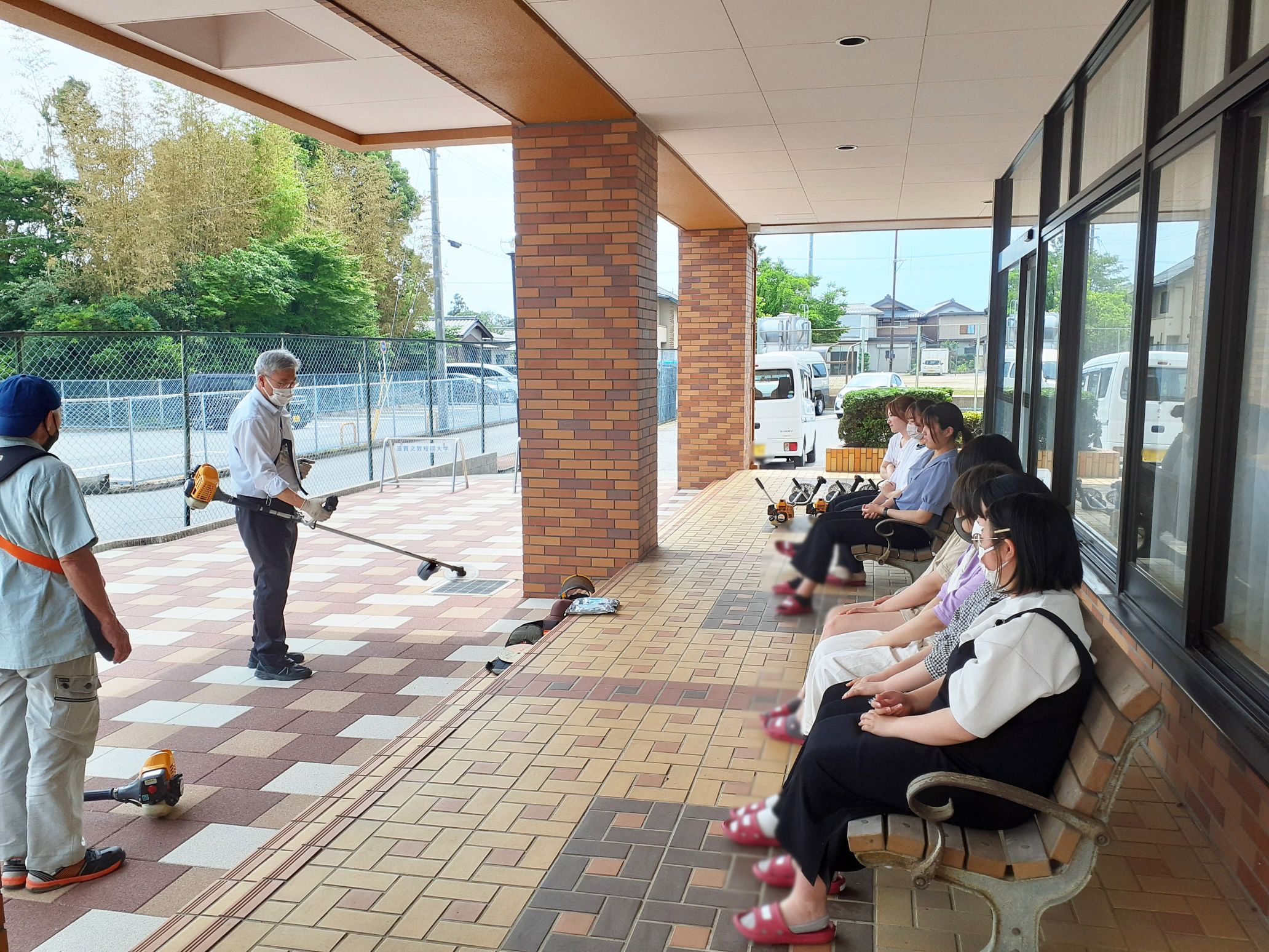 ボランティア活動では、草刈り機を使用するので、その使い方について学びました。