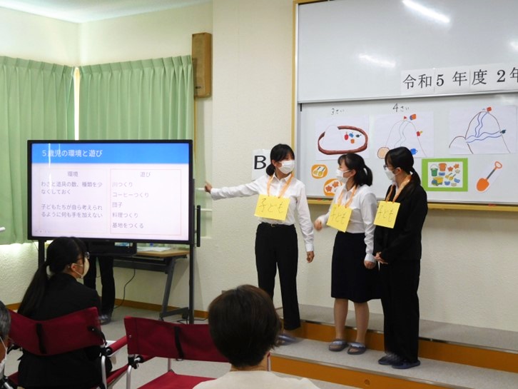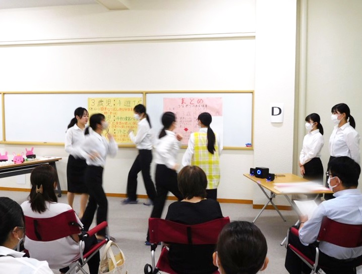 そして、その学びの成果を、7月29日(土)に長浜市内の私立保育園、こども園の先生方に、発表させていただきました。参加いただきました先生方には、大変貴重なご意見、ご感想をいただき、本当にありがとうございました。
