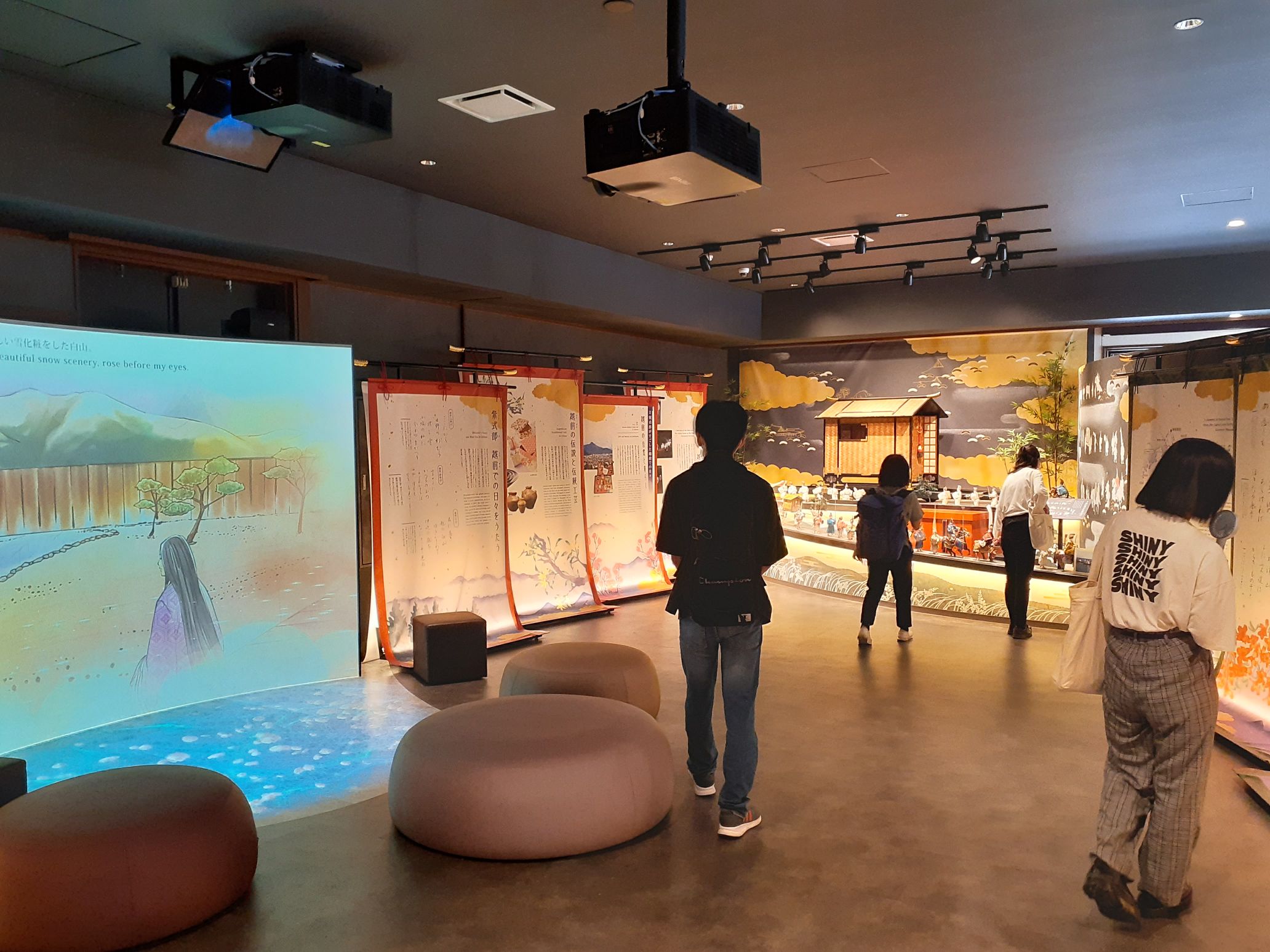 公園に併設する「紫ゆかりの館」(こちらの館長は、本学に非常勤講師としてお招きして講義を担当していただいています三田村悦子先生です)では、無料展示を堪能しました。