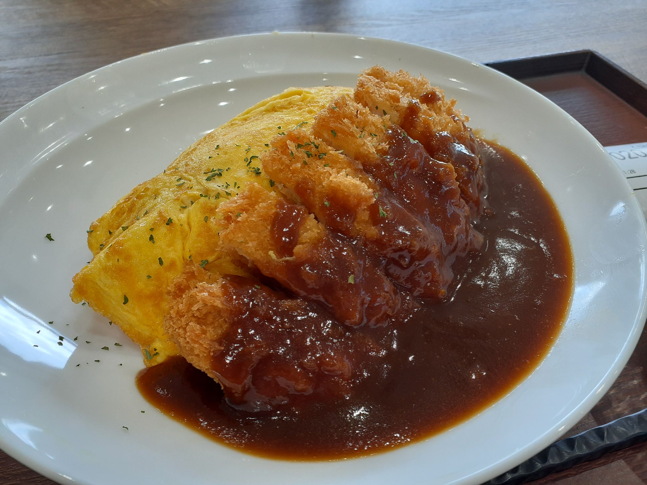 大学が所有する公用車で昼前に出発し、来年2024年開通する北陸新幹線駅「越前たけふ駅」隣接の道の駅でランチ(辛子大根で食べる「越前そば」、ヨーロッパ軒の「ソースカツ丼」、「ボルガライス」などが有名)。「紫式部」グッズも販売され、盛り上がりを感じます。下記の写真は、B級グルメ「ボルガライス」。