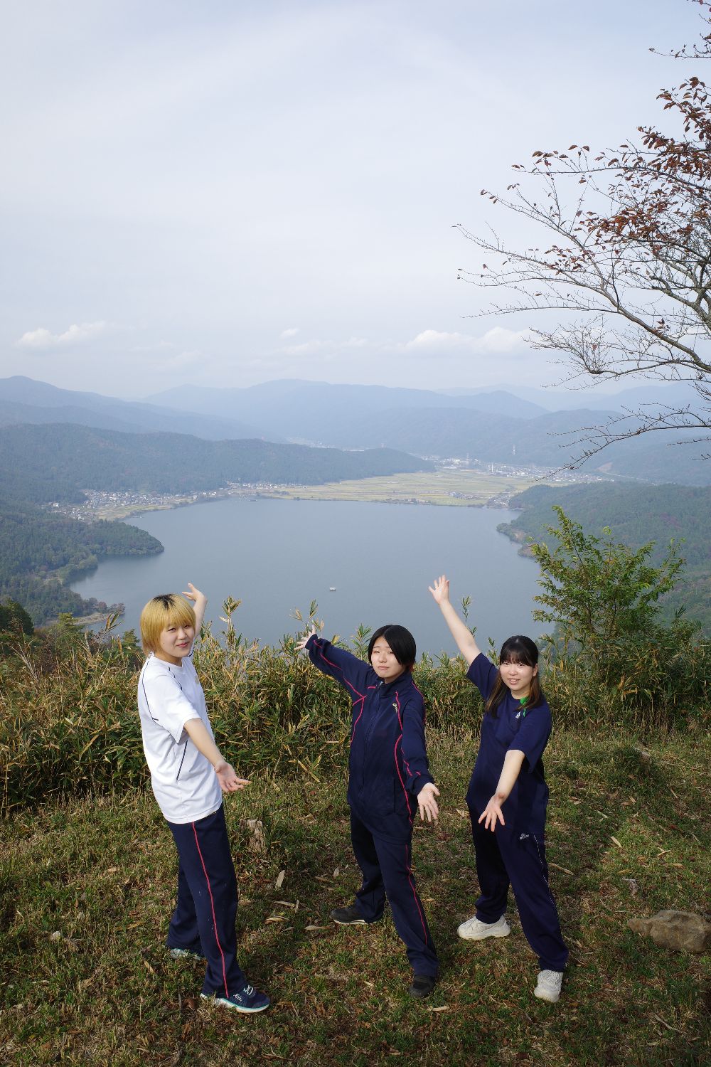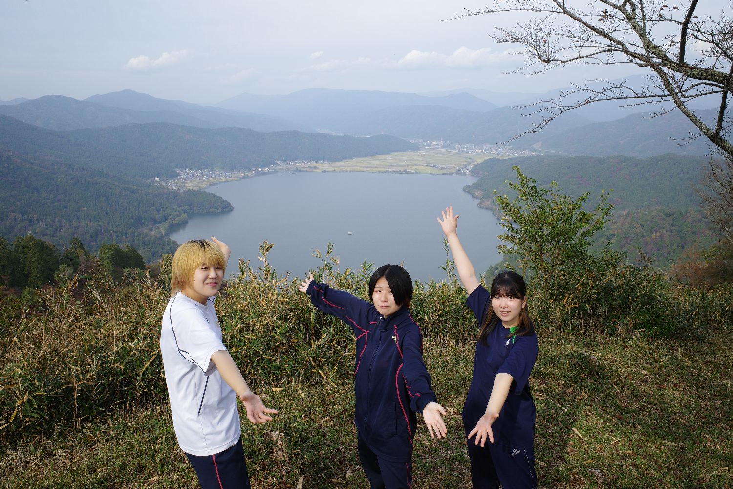 余呉エリアの調査班が、「余呉湖周回トレイル」を体験してきました。全員が国文学科1年生です。これまで、余呉湖の魅力に着目し、「余呉湖祭り」に参加したり、「羽衣伝説」を調査したり、精力的に活動しています。