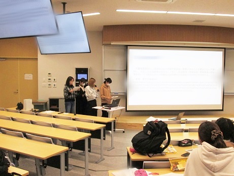 施設実習を前に、「施設実習指導」(担当教員:三岳貴彦)の授業では、事前学習の為に1年生の学生が小グループになって実習先となる色々な社会福祉施設の機能や実際の支援内容などを調べ、授業内での発表会を行いました。この事前学習を通して社会福祉に関する知識だけでなく、「心構え」としての「実習に対する意識」の準備を高める目的もあります。学生が自分自身で「調べ」、発表という形で「人に伝える」という練習を通して、お互いに学びを深めあう機会になりました。