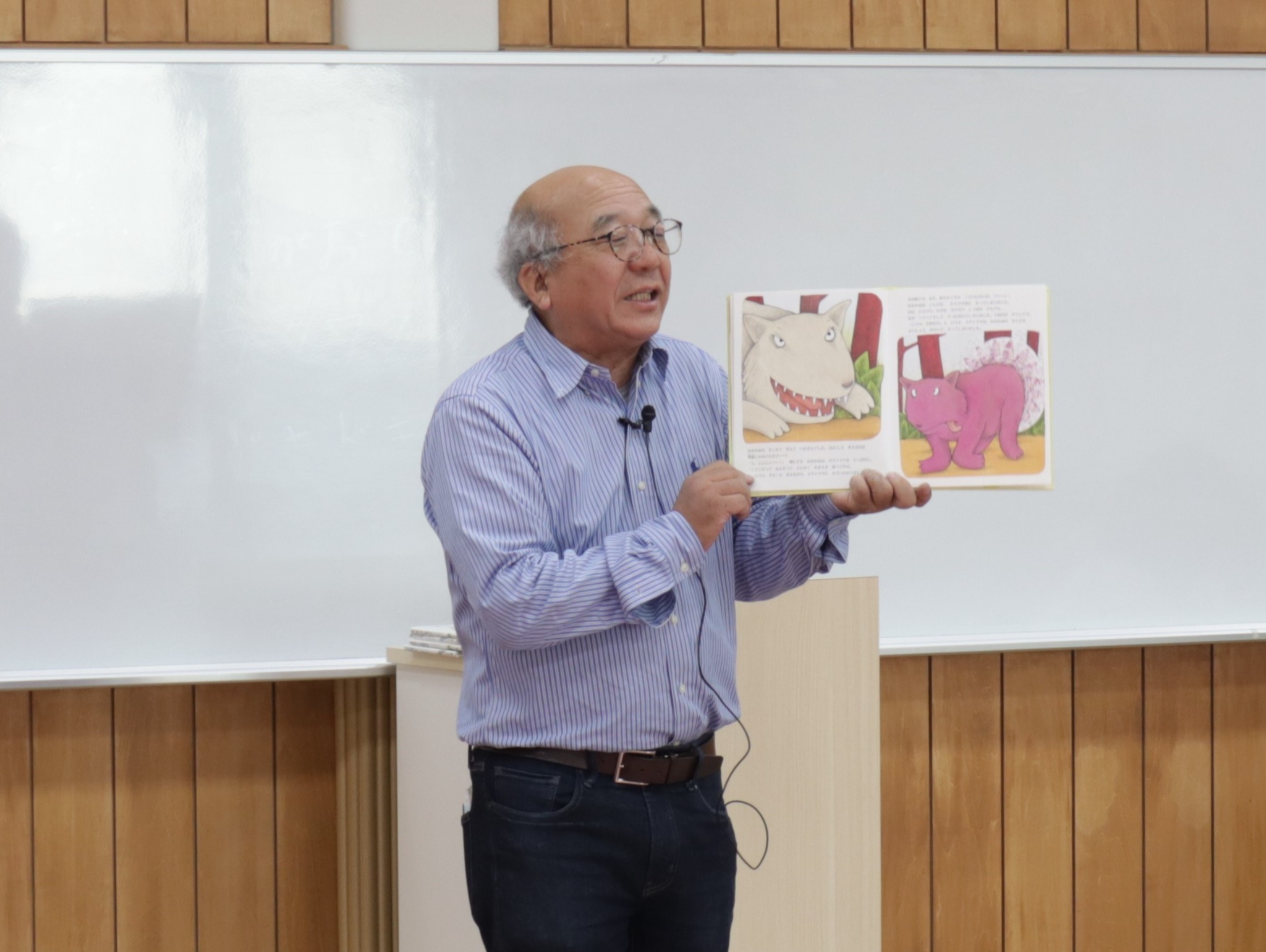 11月21日(火)の午後、京都の宇治で、絵本とヨーロッパの木のおもちゃの専門店「キッズいわきぱふ」を経営されている岩城敏之さんをお招きして、絵本とおもちゃと子育ての講座を本学の翠湖館あすなろホールで開催しました。