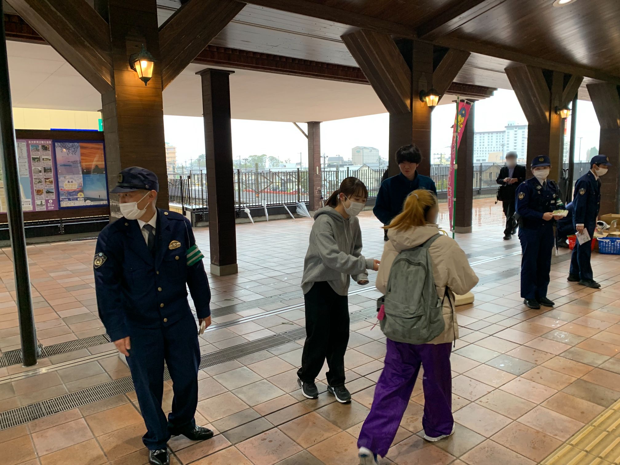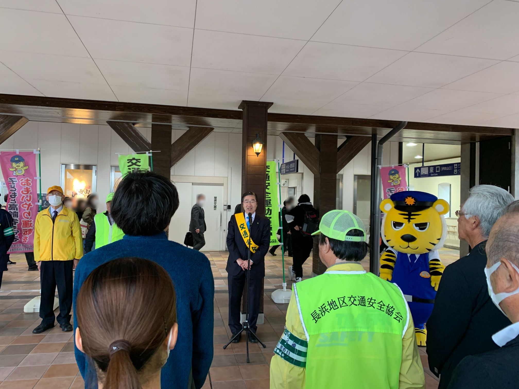先日、通勤・通学ラッシュ中の長浜駅にお邪魔させていただき、春の交通安全ボランティアに参加させていただきました。