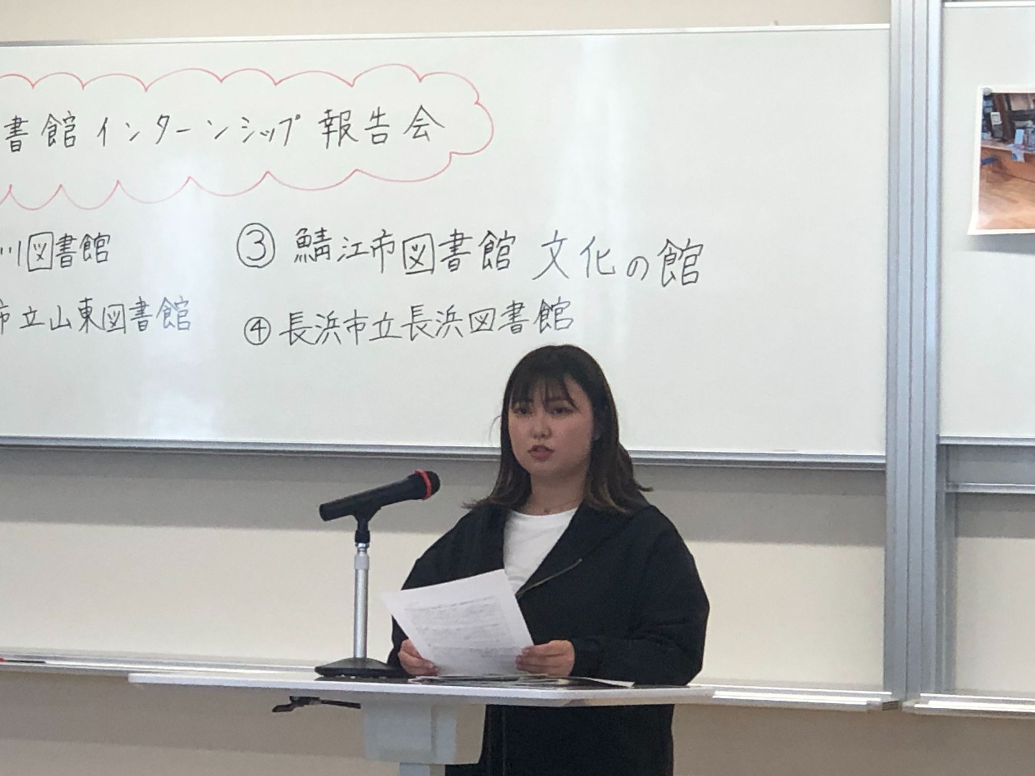 昨年度も、滋賀県内で、東近江市立能登川図書館(2月2日~8日)、米原市立山東図書館(2月7日~11日)、長浜市立長浜図書館(2月16日~21日)、福井県で鯖江市図書館(2月16日~21日)の4館で受け入れていただき、計6人の学生が、実習に臨みました。インターンシップ実習は、土日を含めた開館日の5日間にわたって図書館の業務を体験するもので、机上の学びでは体験できない貴重な機会となります。