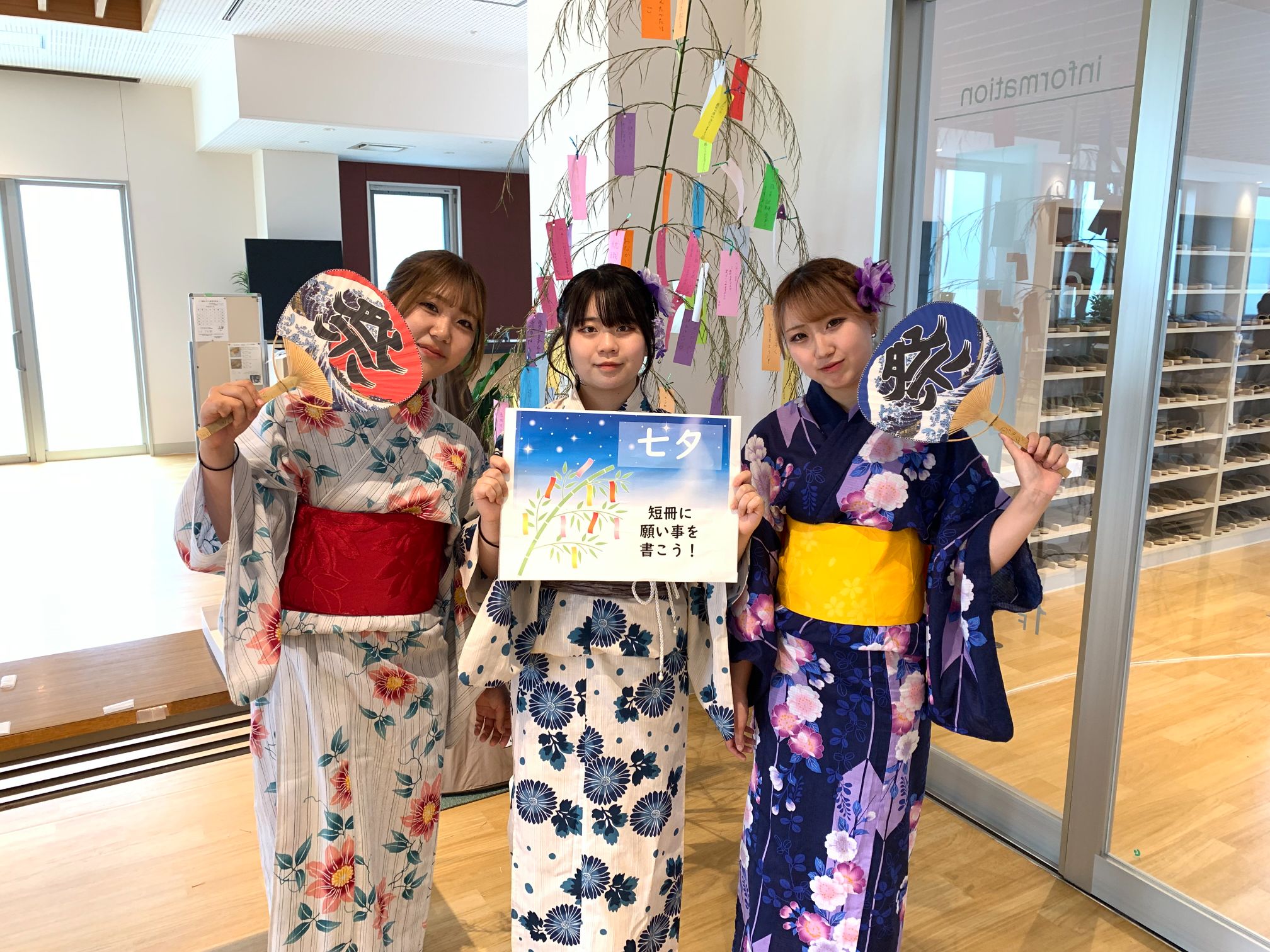 また、いぶきホールの笹飾りには学生・教職員の願いがこもった短冊がたくさん飾られております。