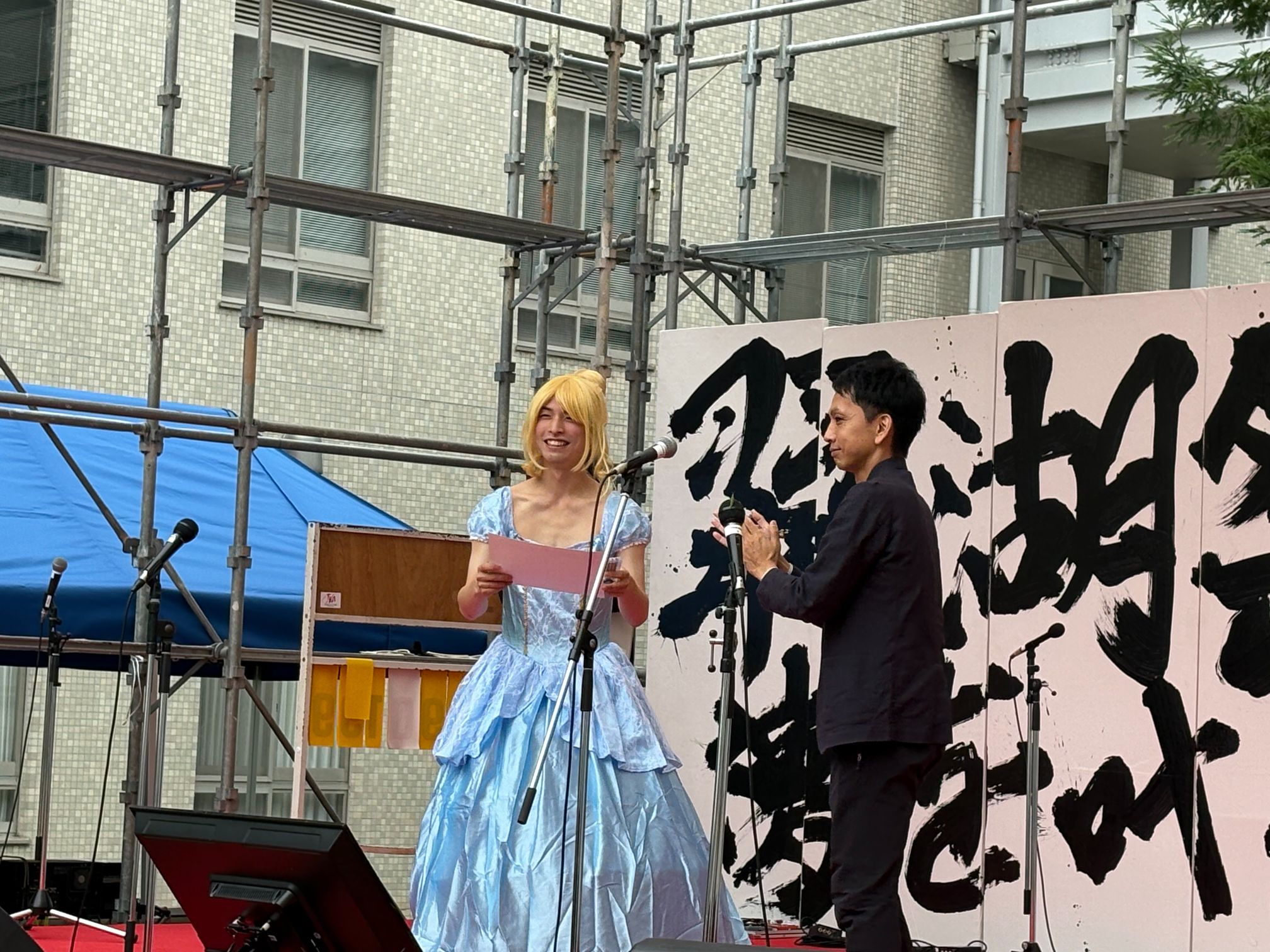 本学の学長の挨拶後には、サプライズ表彰式も開催され、シンデレラ姿に身を包んだ学生が表彰されておりました。