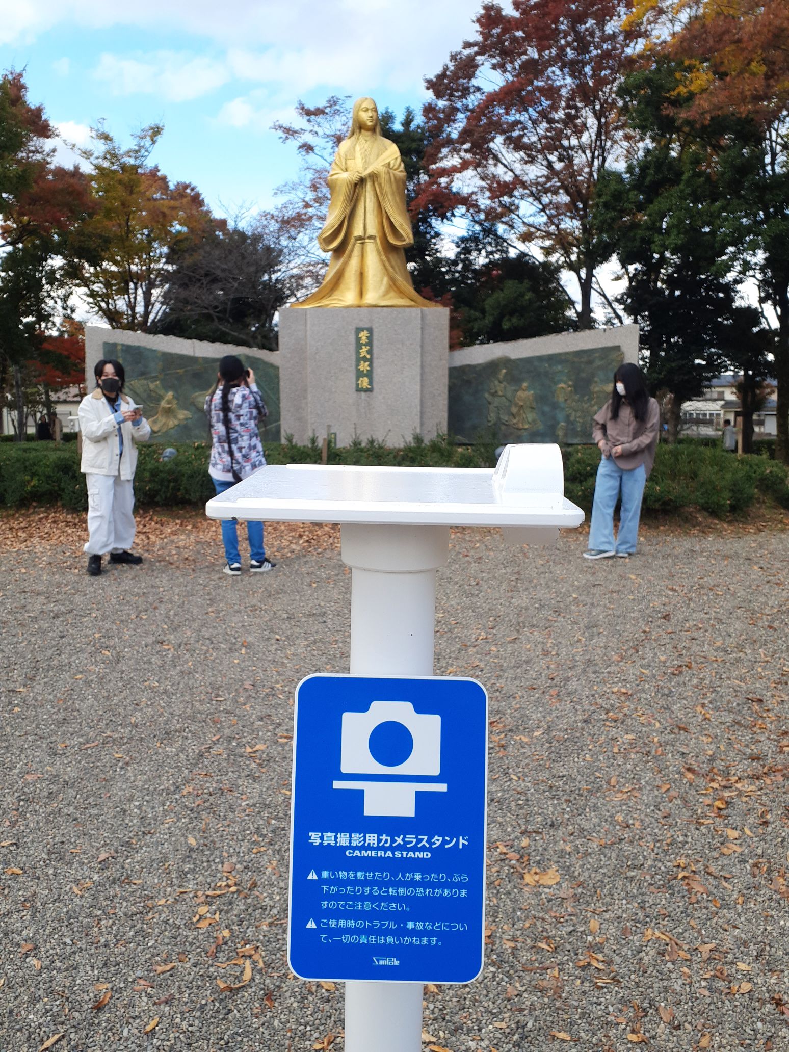 メインは、何といっても日野山を眺める黄金に輝く紫式部像。