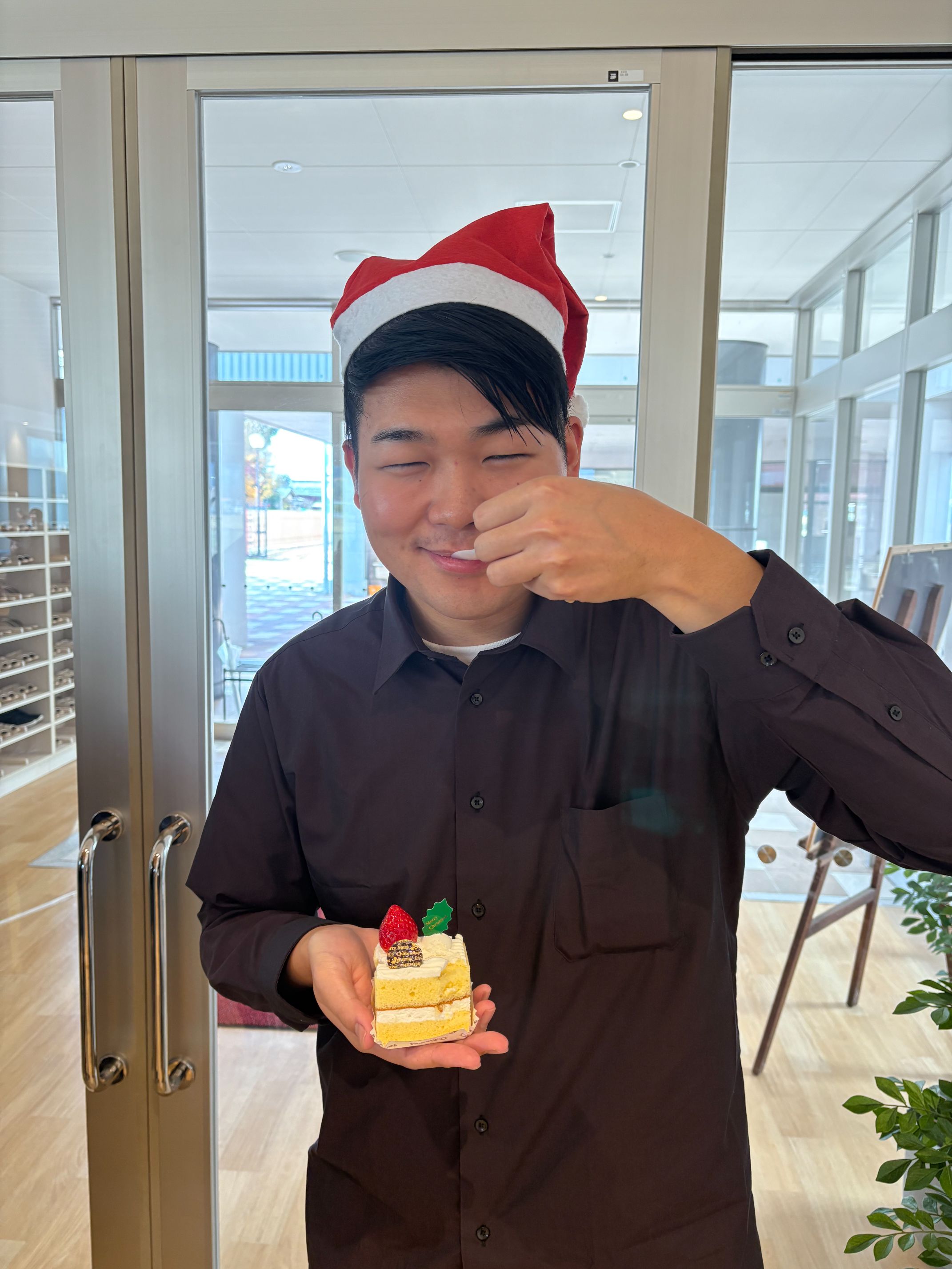 今回のクリスマス会では、一人一つチョコケーキまたはショートケーキが提供されました。