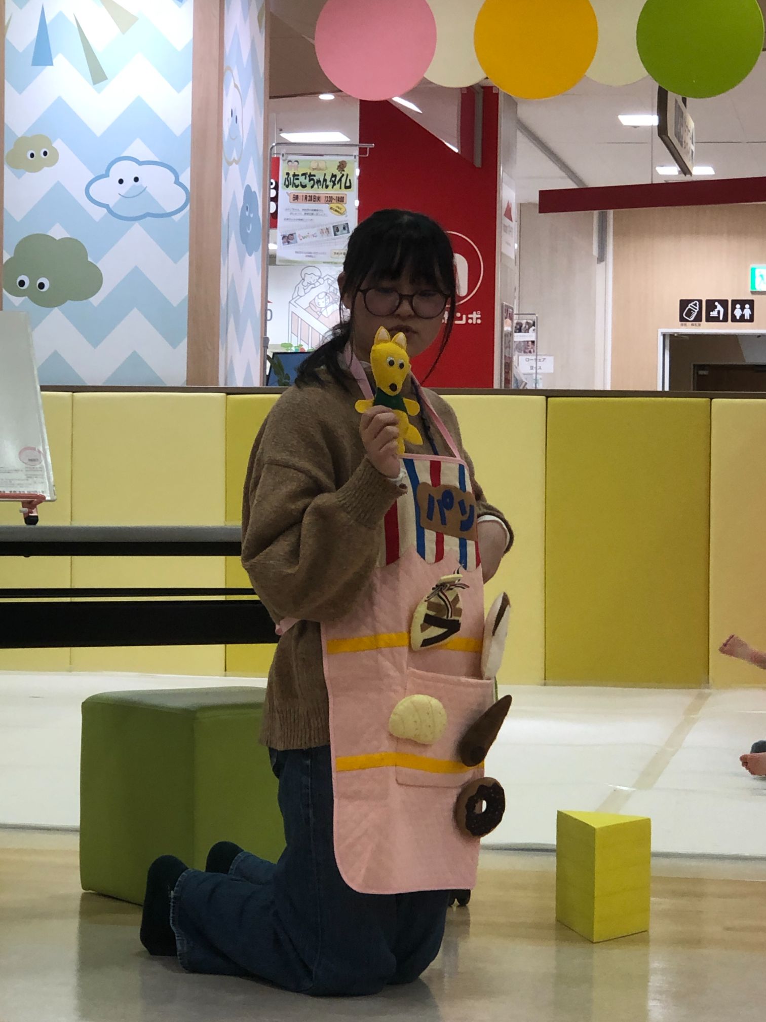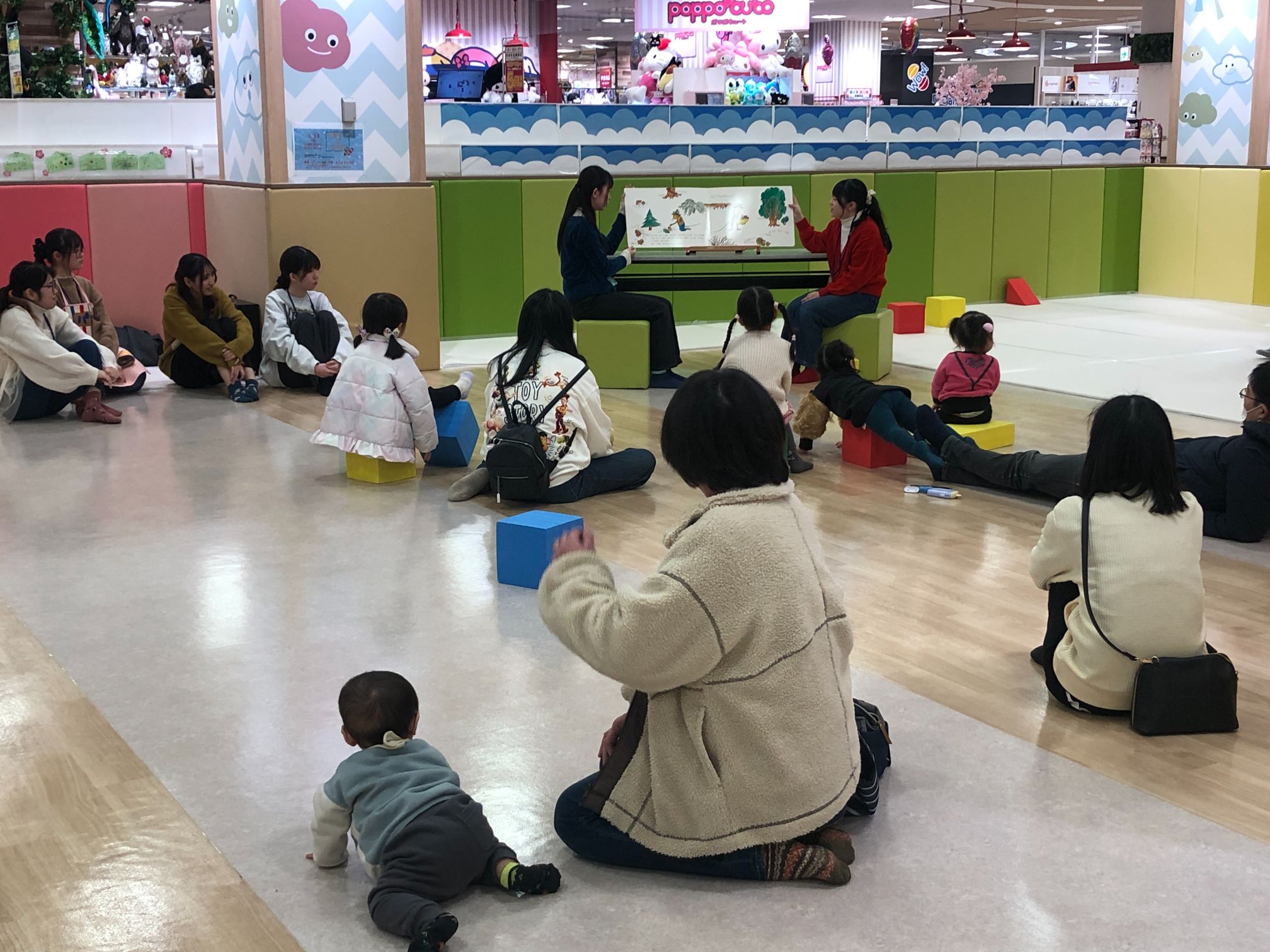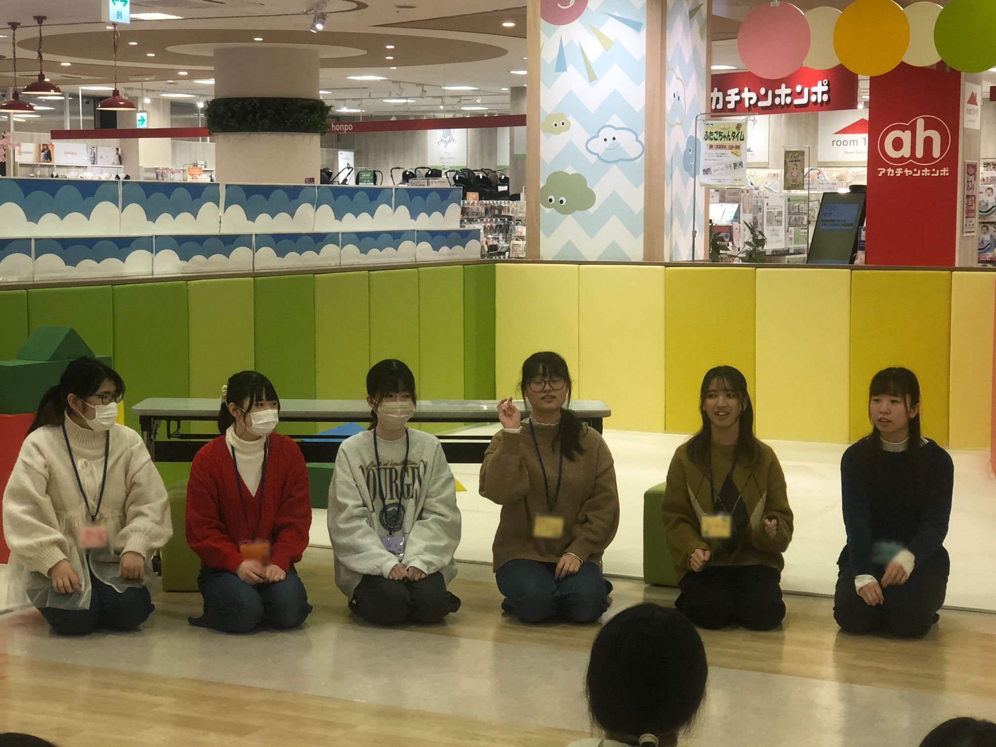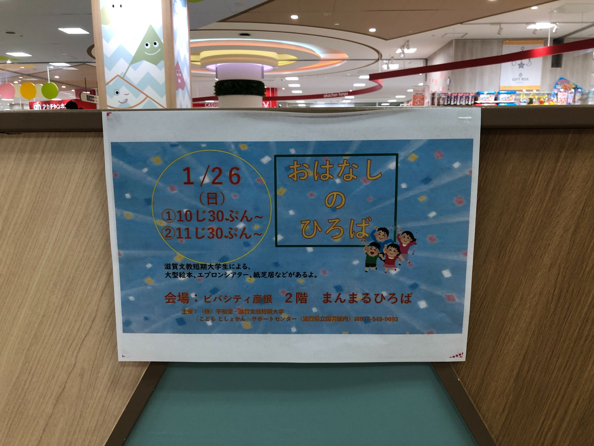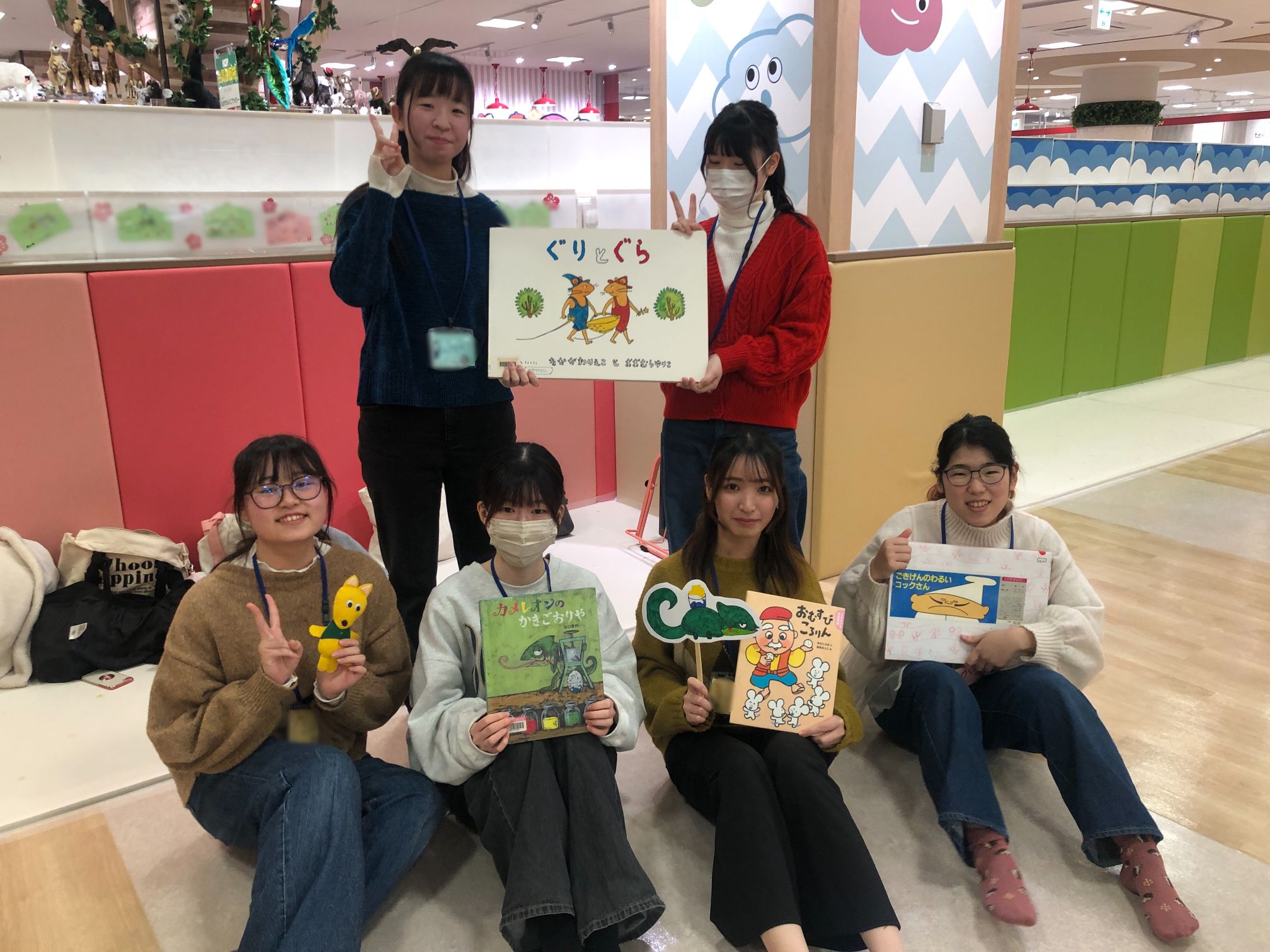 1月26日(日)に、ビバシティ彦根2階のまんまる広場にて開催された「おはなしのひろば」に、国文学科の学生6名が参加してきました。