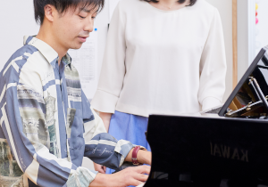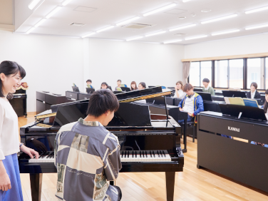| 休み時間には、ピアノレッスン室でピアノ練習をしたり同級生と語らったりしていることが多いです。 | ||