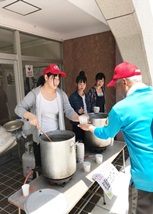 本学のサービスポイントでは、びわこ南10kmコース参加者の昼食会場でもあったため、サービス品(お菓子、お漬物、飲み物)提供の他、和風わかめスープの提供を行いました。本学学生スタッフは、ウォーカーの方を笑顔で迎え、短い時間でもくつろいでいただけるよう、精一杯おもてなしをしました。