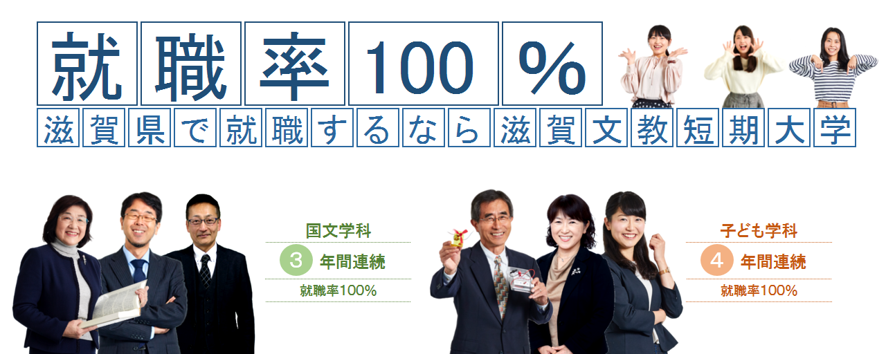 就職率100%を達成!国文学科3年間連続、子ども学科4年間連続!