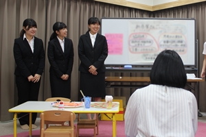 なお、当日は就職フェアの前に長浜市民間保育協議会との連携事業として、本学子ども学科2年生の授業「基礎力プログラムⅢ」の成果発表を行いました。