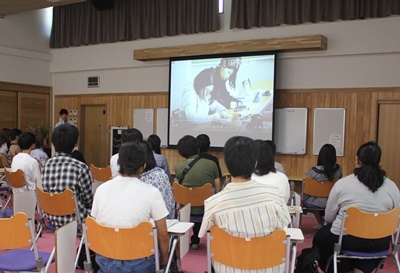 大学生活が分かる動画鑑賞や授業体験、ランチ体験などを行いました。