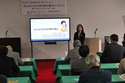 また、贈呈式において、本学の子育て支援事業「ぶんぶんひろば」の取り組みについて子ども学科大橋英子教授の講演を併せて開催しました。