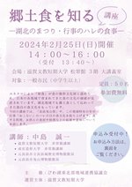講座「郷土食を知る―湖北のまつり・行事のハレの食事―」のご案内
