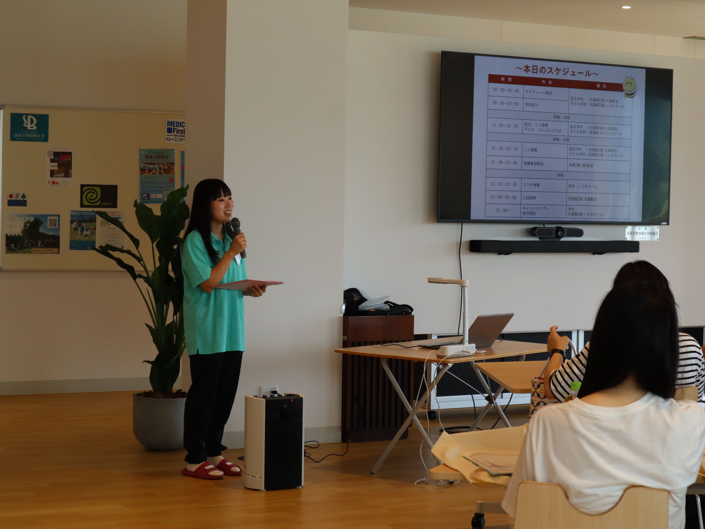 普段のオープンキャンパスの内容に加え、今回は滋賀文教短期大学の特色の一つである「ぶんぶんひろば」の様子を見学していただきました。